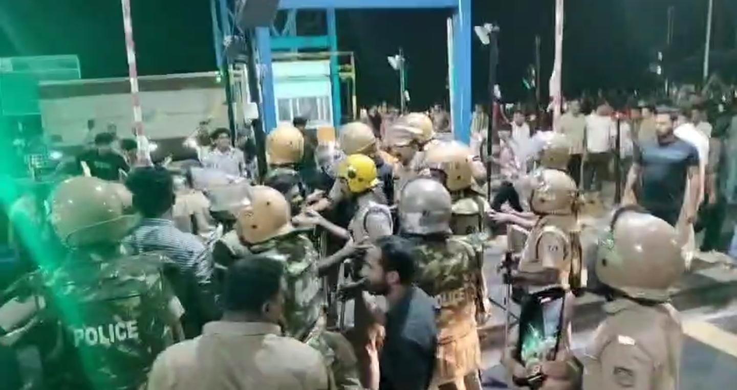 A protest against the Arikkady toll plaza near Kumble in Kasaragod district escalated into violence late Wednesday night, as thousands of protesters stormed the site and vandalised toll infrastructure. Protesters smashed CCTV cameras, damaged glass panels, tore off booth barriers, and disabled scanners, allowing vehicles to pass without paying toll fees until morning.