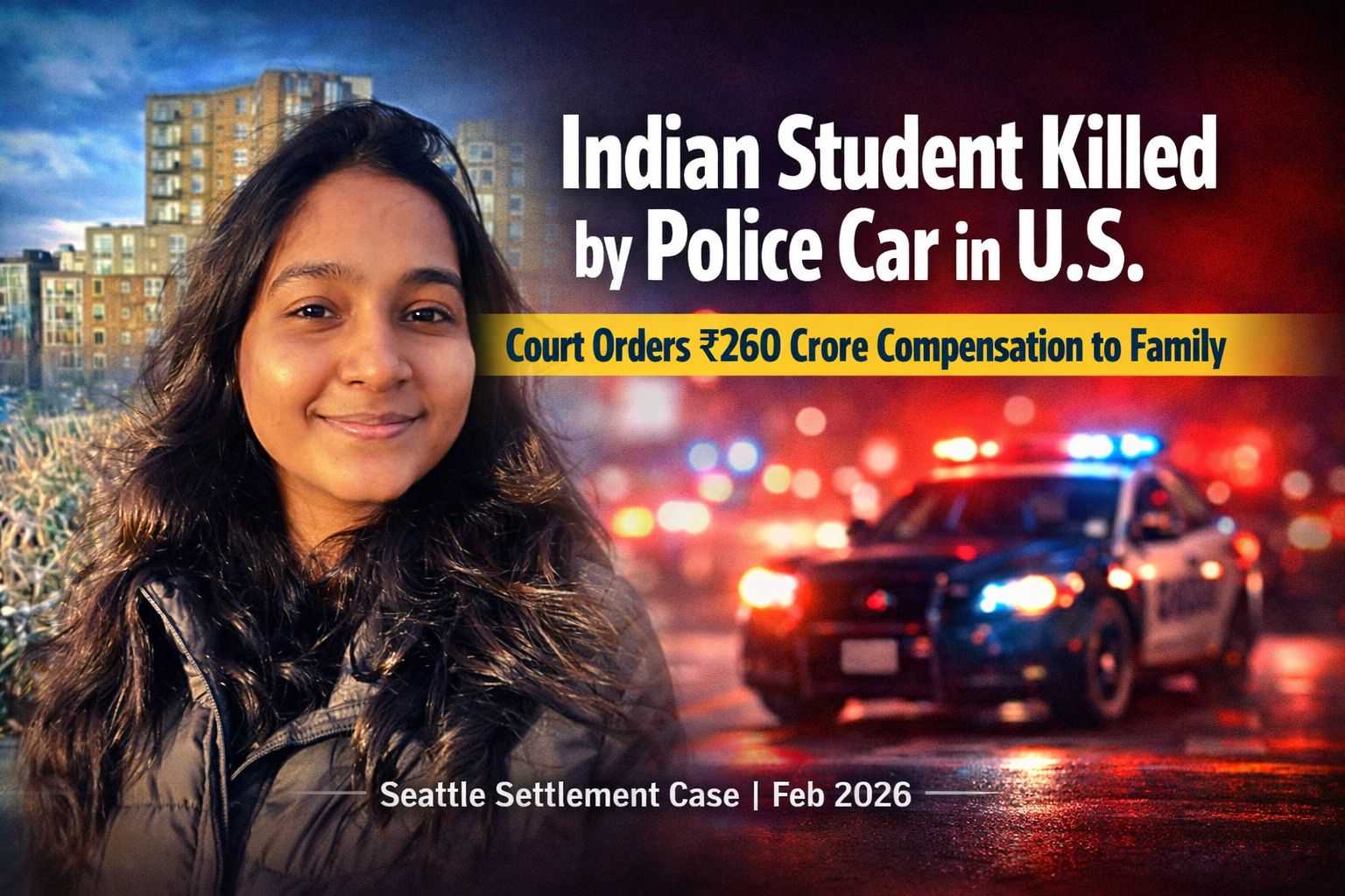 In a major development in the 2023 fatal crash case in the United States, a court has ordered compensation of nearly 29 million dollars (approximately ₹260–262 crore) to the family of 23-year-old Indian student Jaahnavi Kandula, who died in a road accident involving a police vehicle. The settlement is being described as one of the largest compensation amounts in U.S. history in cases involving police negligence.
