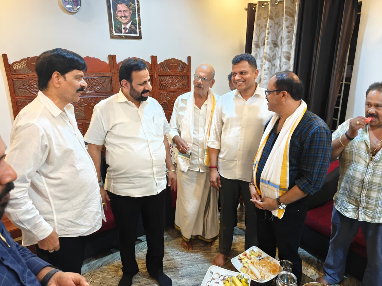 The controversy that erupted last week over the alleged insult to senior Kambala judge and veteran of the Kambala field, Gunapala Kadamba, has finally come to an end. At the Miyyaru Kambala in Karkala, District Kambala Committee President Belapu Deviprasad Shetty and Mucchooru Lokesh Shetty, who was accused of insulting Kadamba, offered a public apology on stage.
