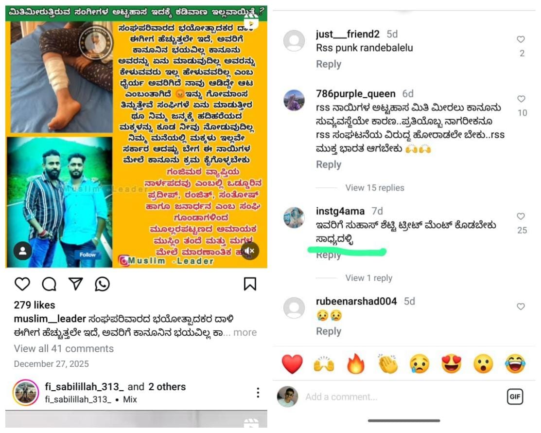 Suhas Shetty, Social Media Post, Bajpe Police...