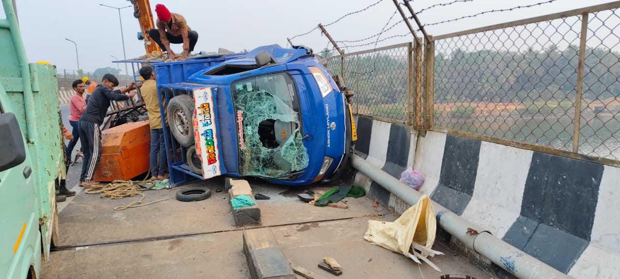 ನೇತ್ರಾವತಿ ಸೇತುವೆ ಆವರಣ ಗೋಡೆಗೆ ಅಪ್ಪಳಿಸಿದ ಮಿನಿ ಟ...