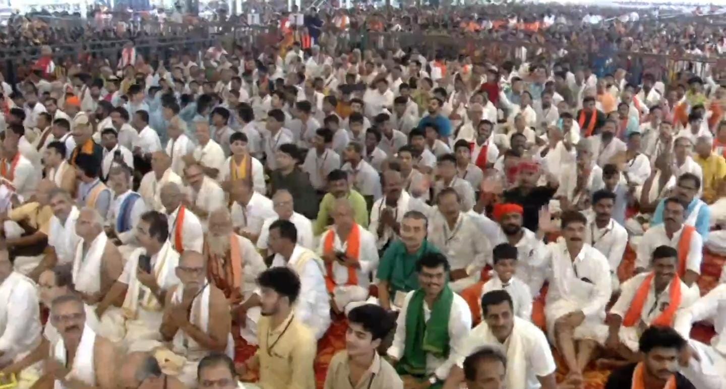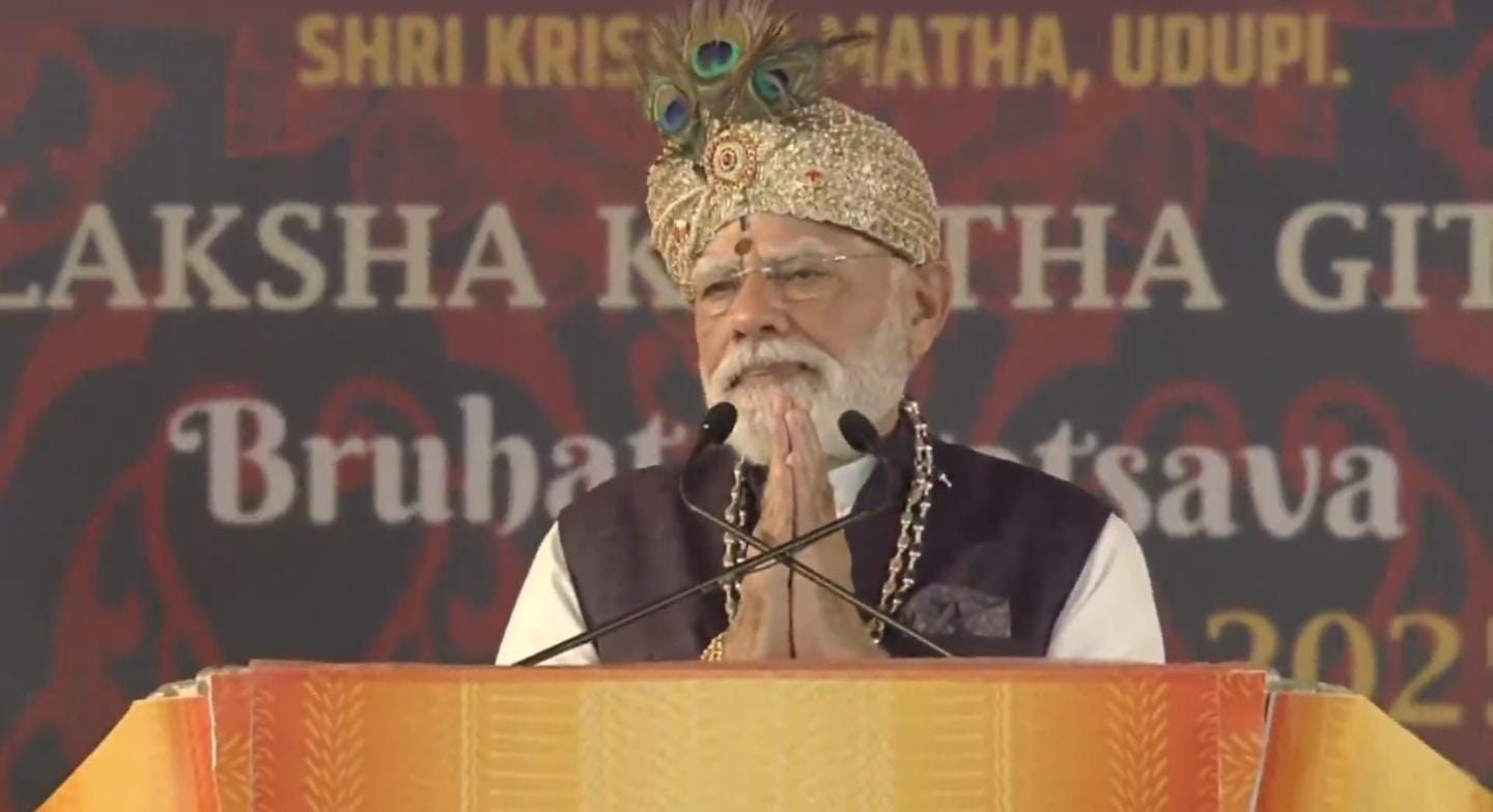 During the Laksha Kantha Gita Chanting event at Udupi Krishna Matha, Prime Minister Narendra Modi urged citizens to adopt “Nav Sankalp” for India’s development by 2047—protecting water, growing trees, embracing organic food, reducing oil use, promoting millets, and supporting Swadeshi. Modi launched the mass chanting of the 15th chapter of the Bhagavad Gita with one lakh participants and praised Udupi’s spiritual and governance legacy.